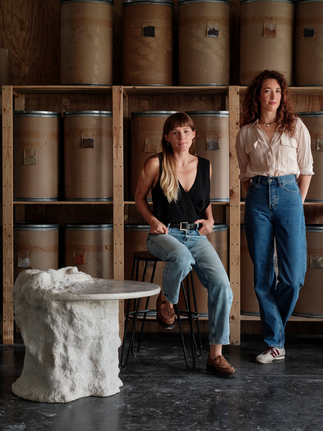 Nous sommes Élodie Michaud et Rebecca Fezard, un duo guidé par la conviction profonde qu’il existe une autre voie : celle de créer autrement et de réinventer les manières de faire. À la fois designers, artisanes, chercheuses et artistes, le « hors » du studio est notre boussole ; celle qui nous guide pour abolir les frontières entre les disciplines et penser au-delà des cadres établis.